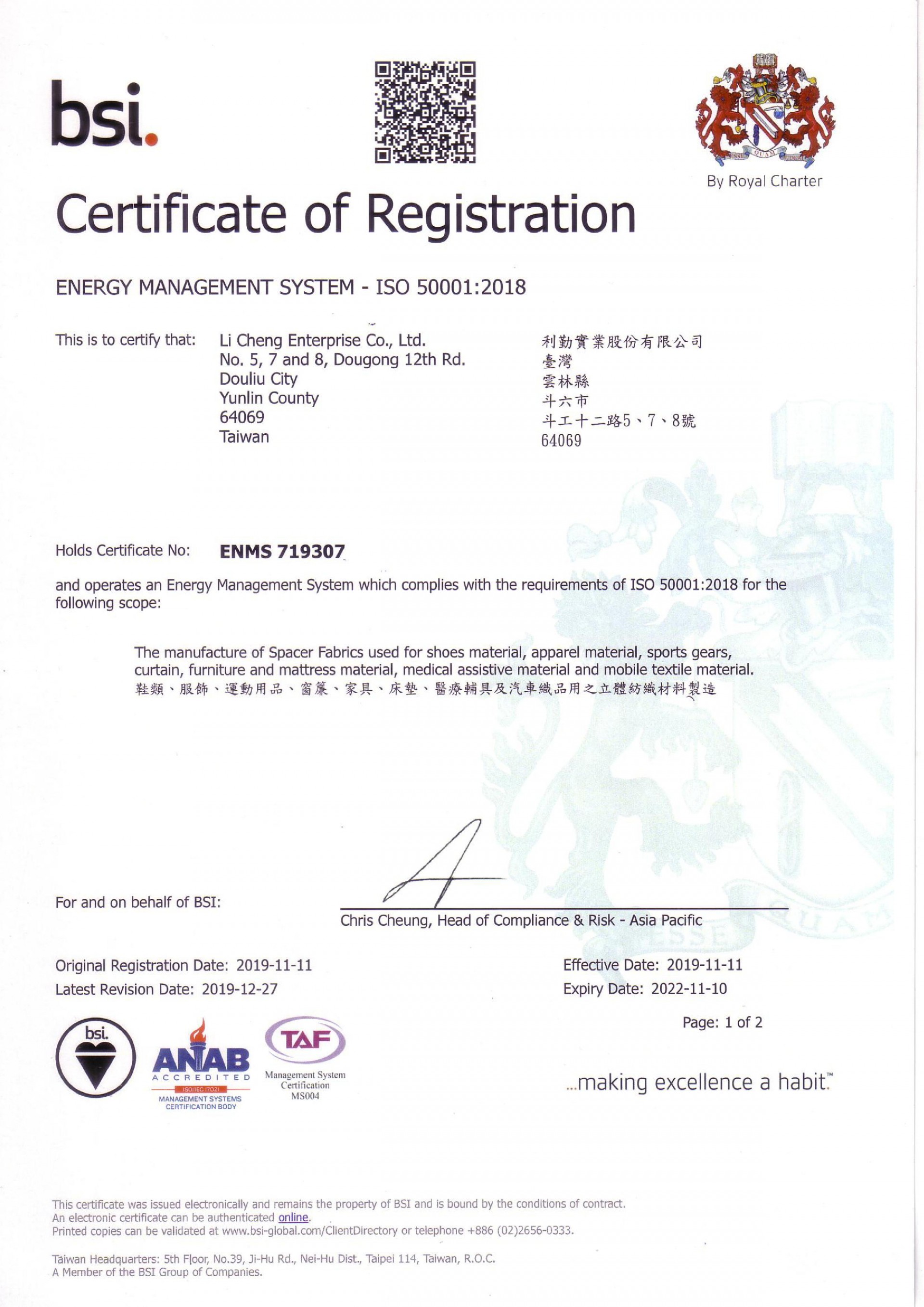 Energy Policy Environmental Policy Energy Policy Occupational Safety and Health Policy Corporate Social Responsibility Report Energy Policy 利勤實業股份有限公司是專業生產 3D 立體織物公司,節能減碳是利勤實業股份有限公司身為世界公民的重要責任與承諾,為保護地球環境、善盡企業之社會責任,及讓全體同仁深刻認知節約能源的重要性與自我責任,特別建立能源管理系統,藉由訓練、研討、宣導、溝通及持續改善,達到符合法規及節能減碳之目的。為履行前揭承諾,本公司將貫徹以下能源政策承諾。 我們承諾做到 : 遵循能源法規,善盡社會責任 提供資訊資源,促進目標達成 提高能源績效,節能設計採購 推動全員參與,落實能源永續