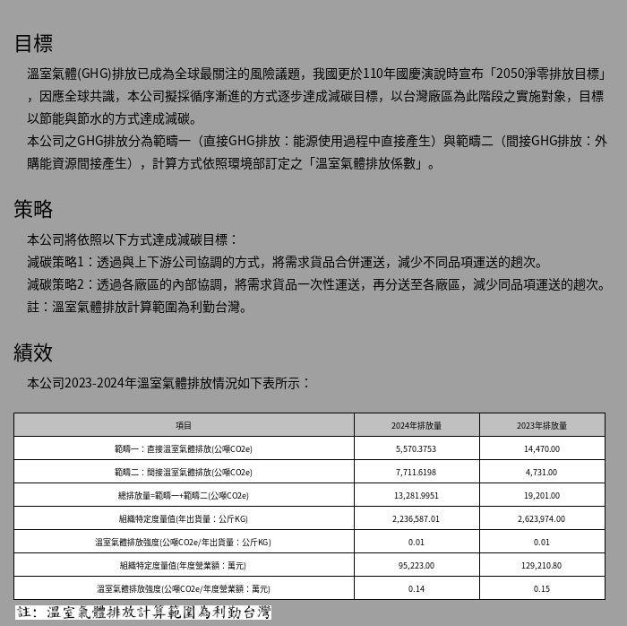 利勤實業股份有限公司是專業生產3D立體織物公司,環境保護是利勤實業股份有限公司身為世界公民的重要責任與承諾,為保護地球環境、善盡企業之社會責任,利勤實業股份有限公司向其所有員工、客戶及社會大眾承諾,每一管理運作均以可靠的、符合環境保護的方式進行,藉環境管理系統ISO 14001 之導入及貫徹實施,提昇環境管理績效並持續改善。